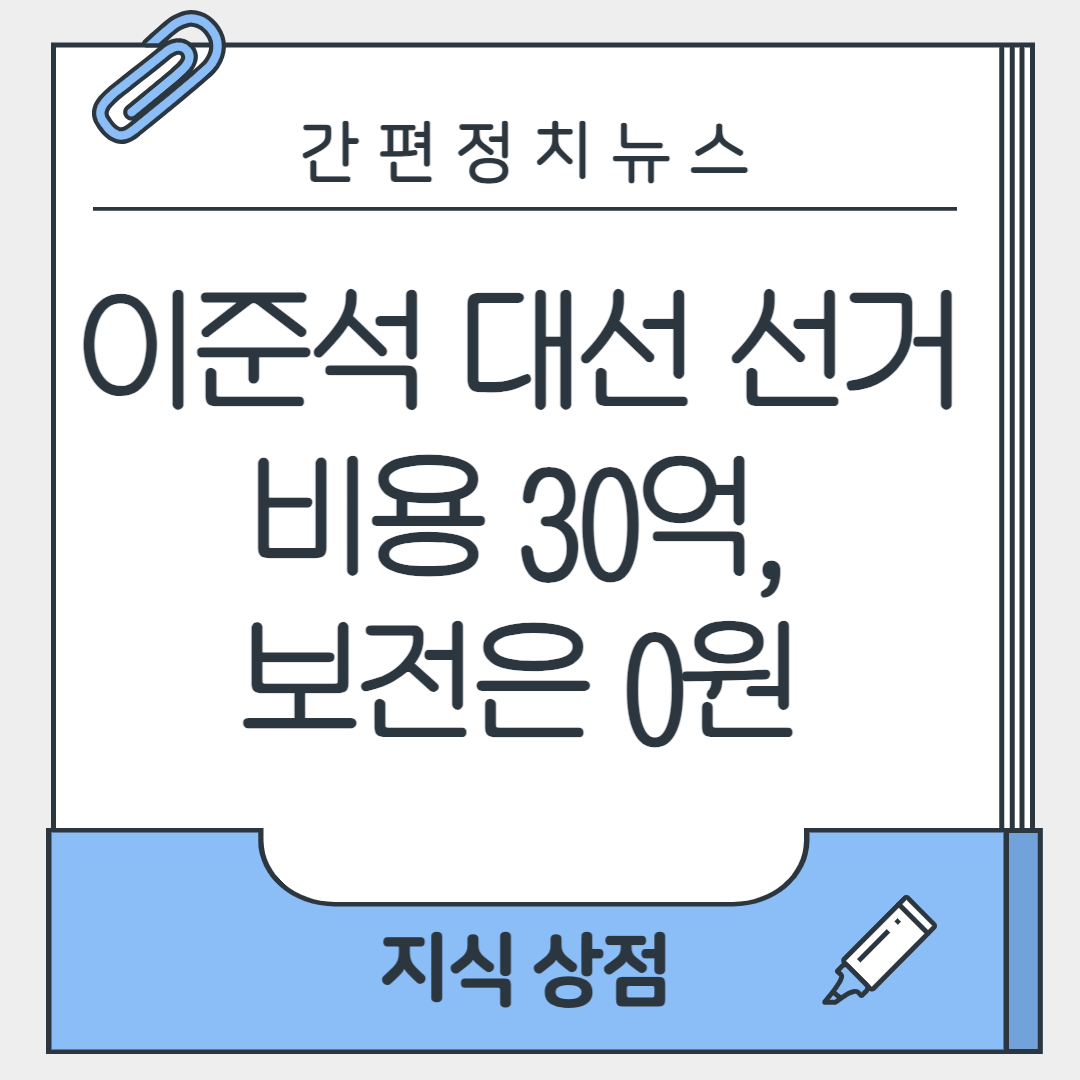 이준석 개혁신당 대선 후보는 제21대 대통령 선거에서 약 30억 원의 선거비용을 지출한 것으로 알려졌습니다. 그러나 득표율이 10% 미만으로 나타나 중앙선거관리위원회로부터 선거비용 보전을 받지 못하게 되었습니다. newswhoplus.com+5ichannela.com+5ichannela.com+5